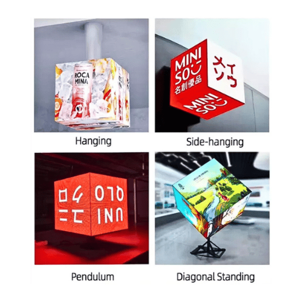 The Cube LED display is a powerful three-dimensional product that can display images on multiple sides and edit videos to achieve incredible visual effects. With its clear image and transcendent advertising value, the Cube LED display is a prominent store sign that can attract more attention and a store decoration that can make more people stop and take notice. It has the potential to significantly increase economic income.